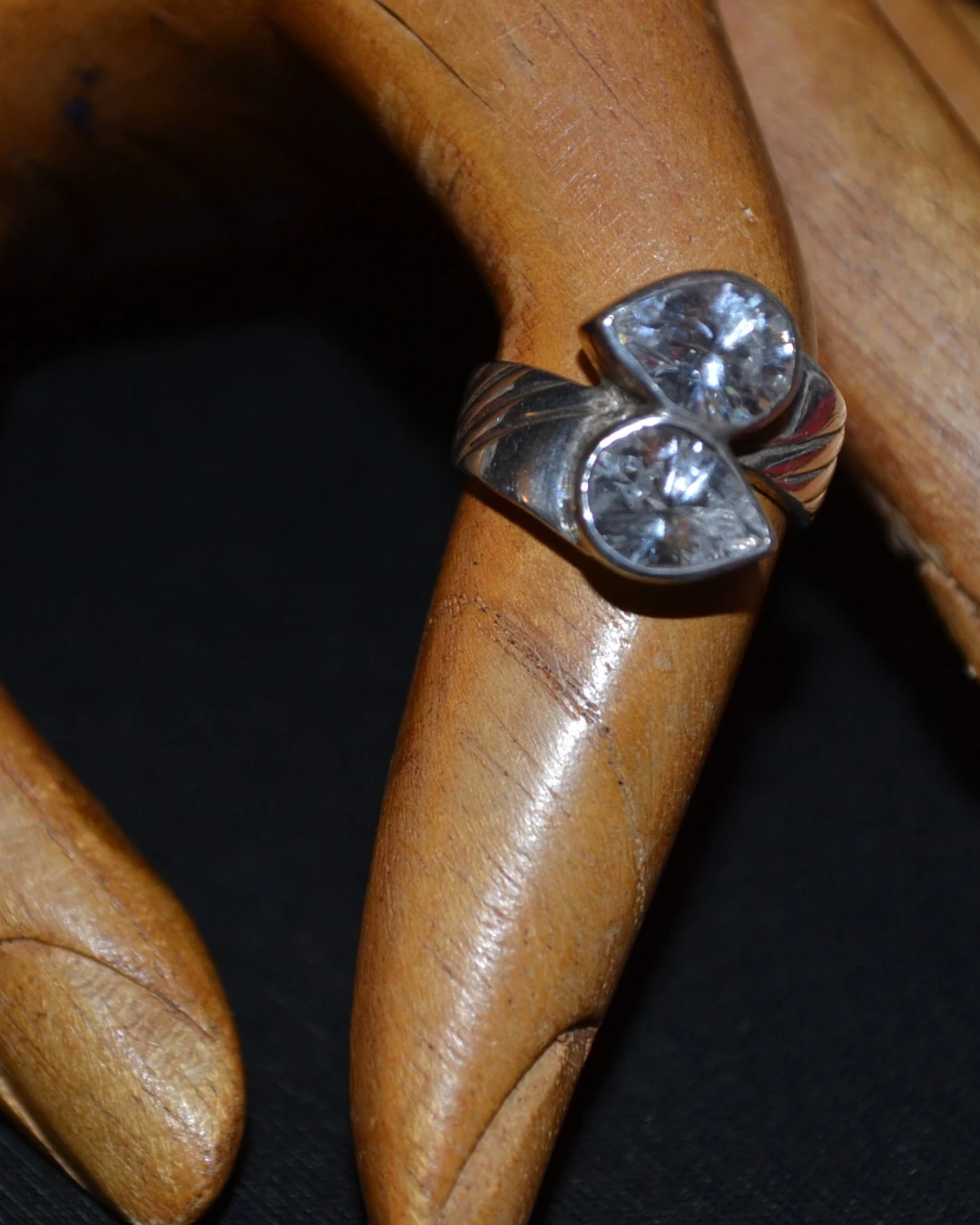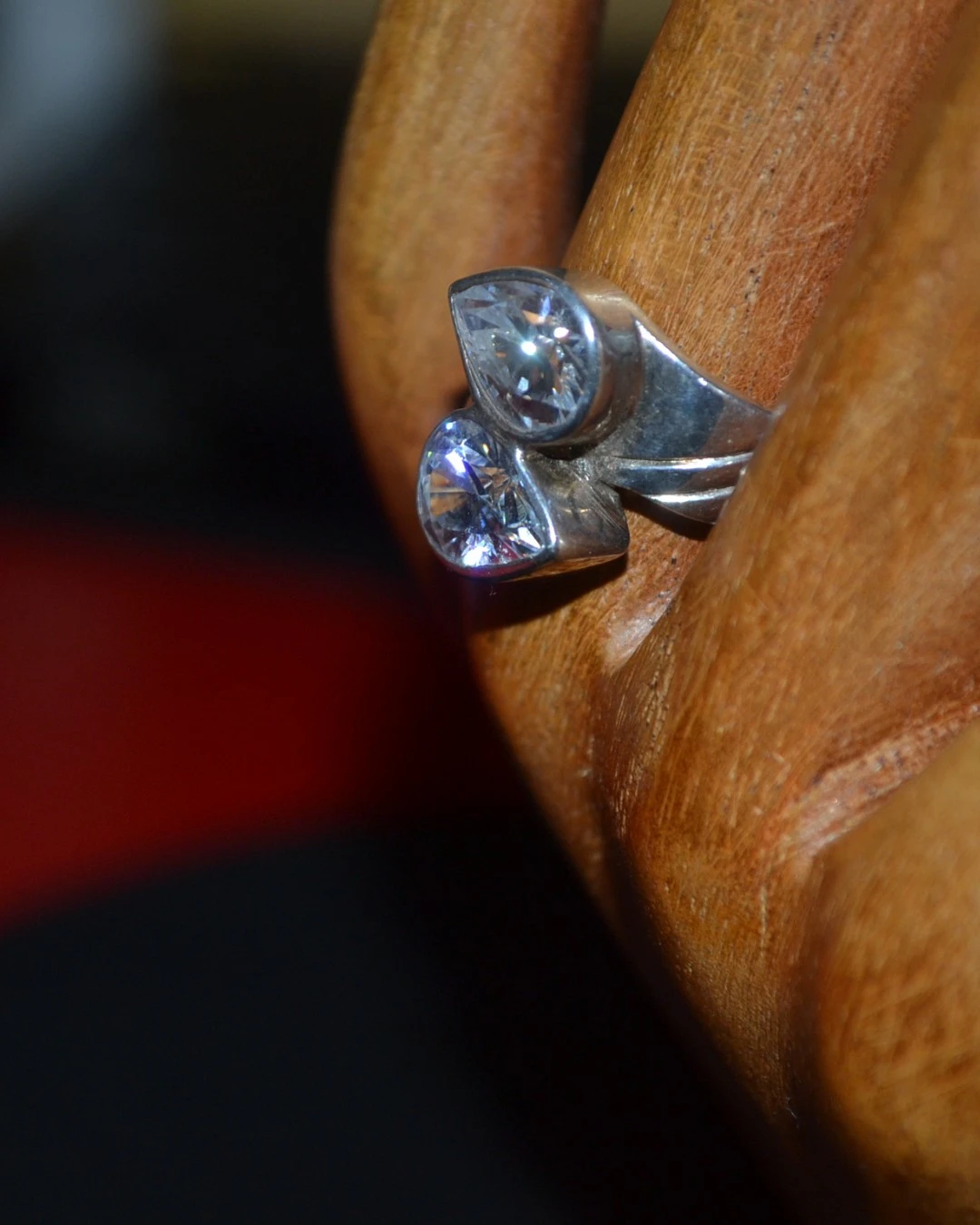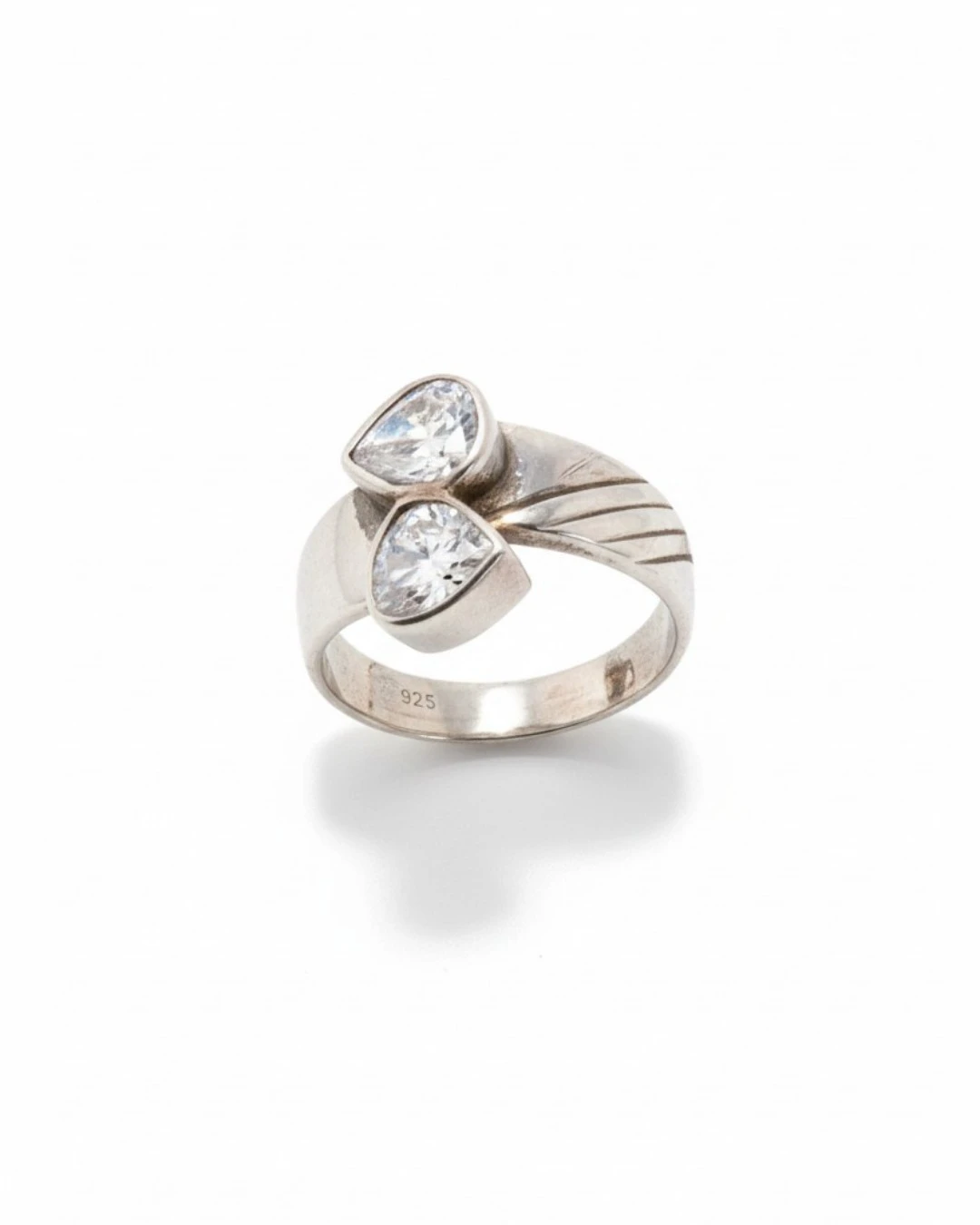 Δαχτυλίδι ασημένιο μέ ζιρκόν vintage! Πολύ όμορφο μέ διπλά μεγάλα ζιρκόν. Νο54
