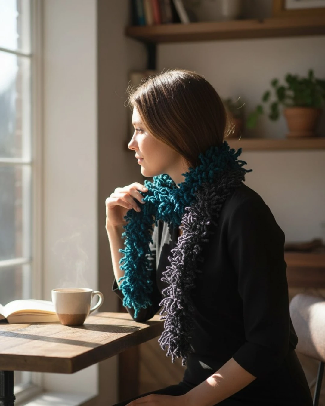 Φουλάρι χειροποίητο πλεκτό δίχρωμο! Διαφορετικό και ζεστό! Μήκος 98cm.