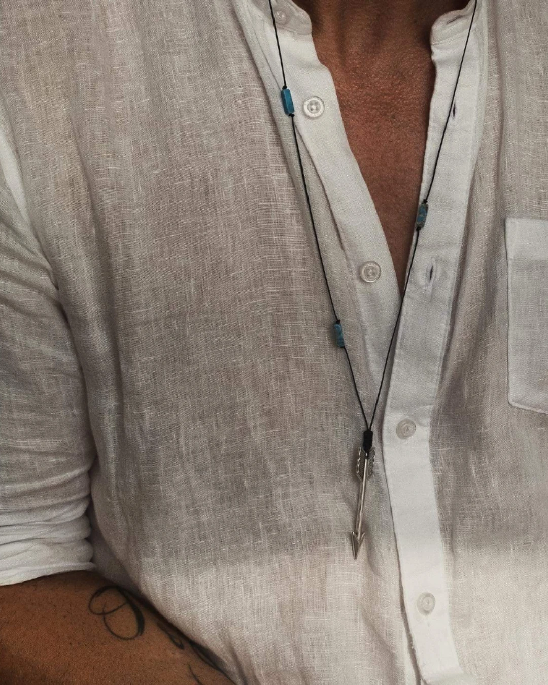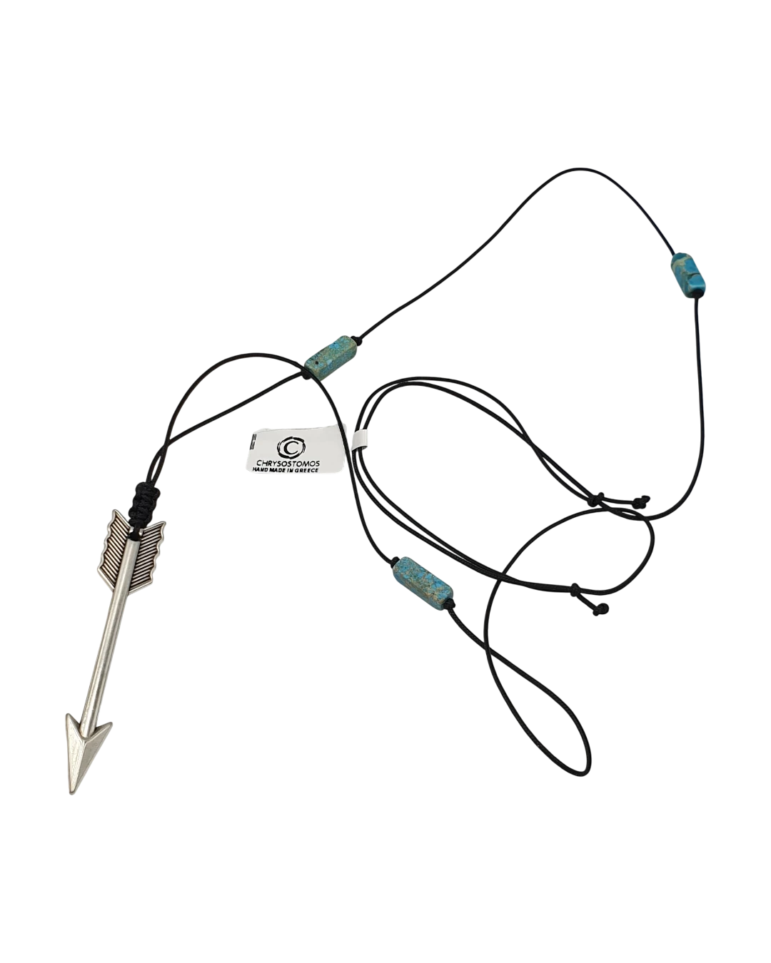 Κολιέ ανδρικό χειροποίητο by Chrysostomos! Πολύ όμορφο “βέλος” με τυρκουάζ πέτρες! Προσαρμοζόμενο μήκος.