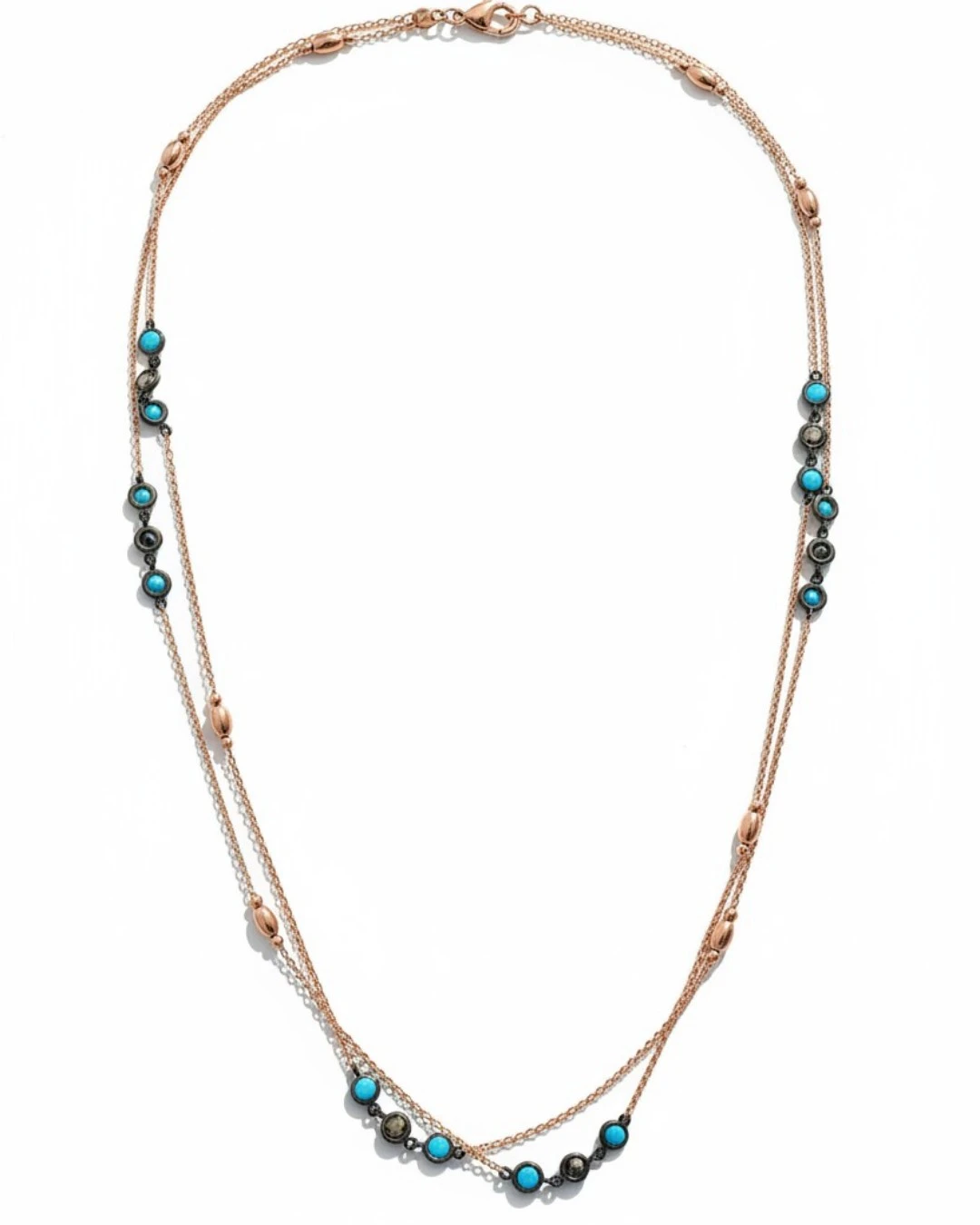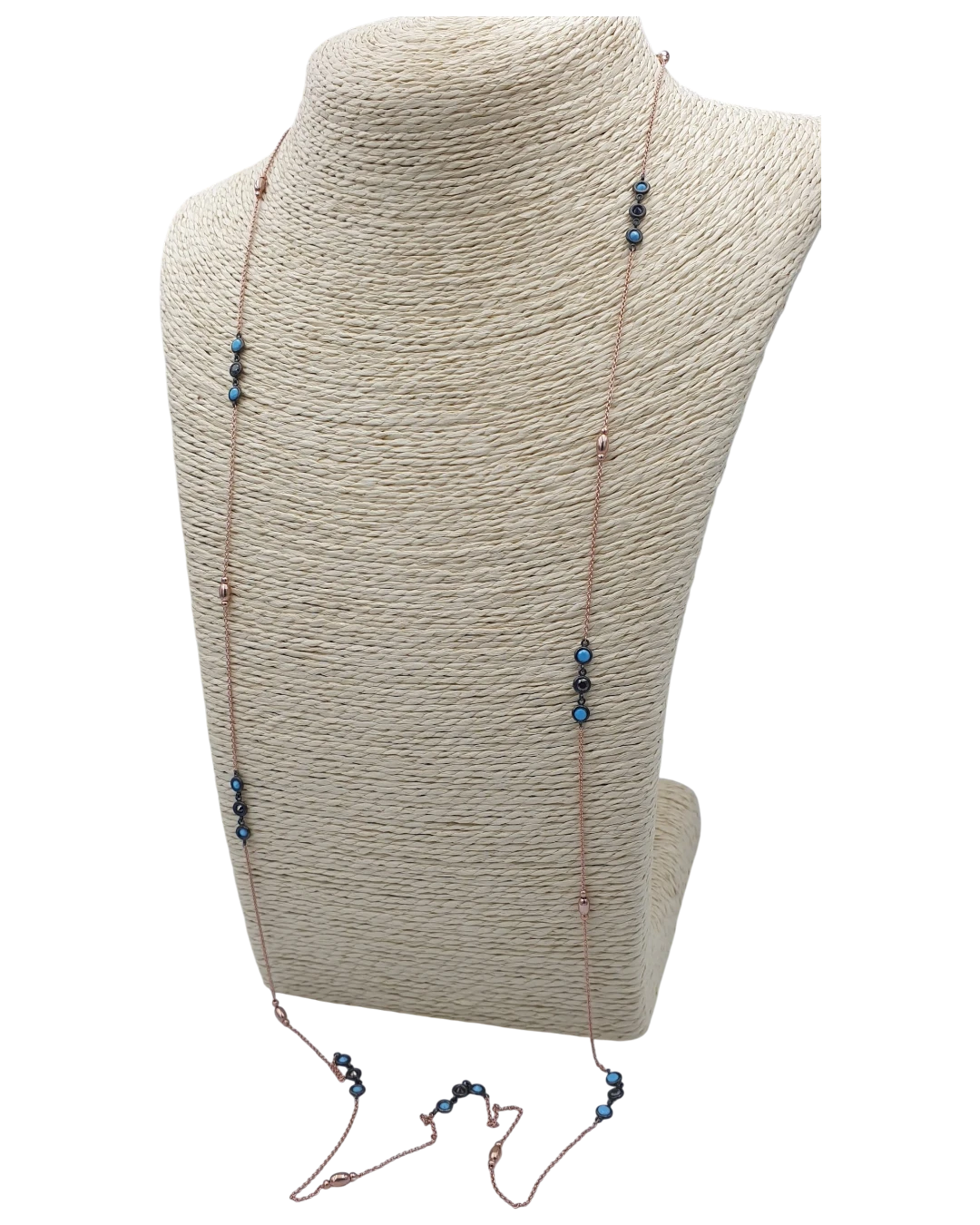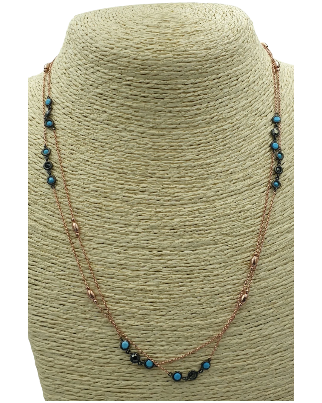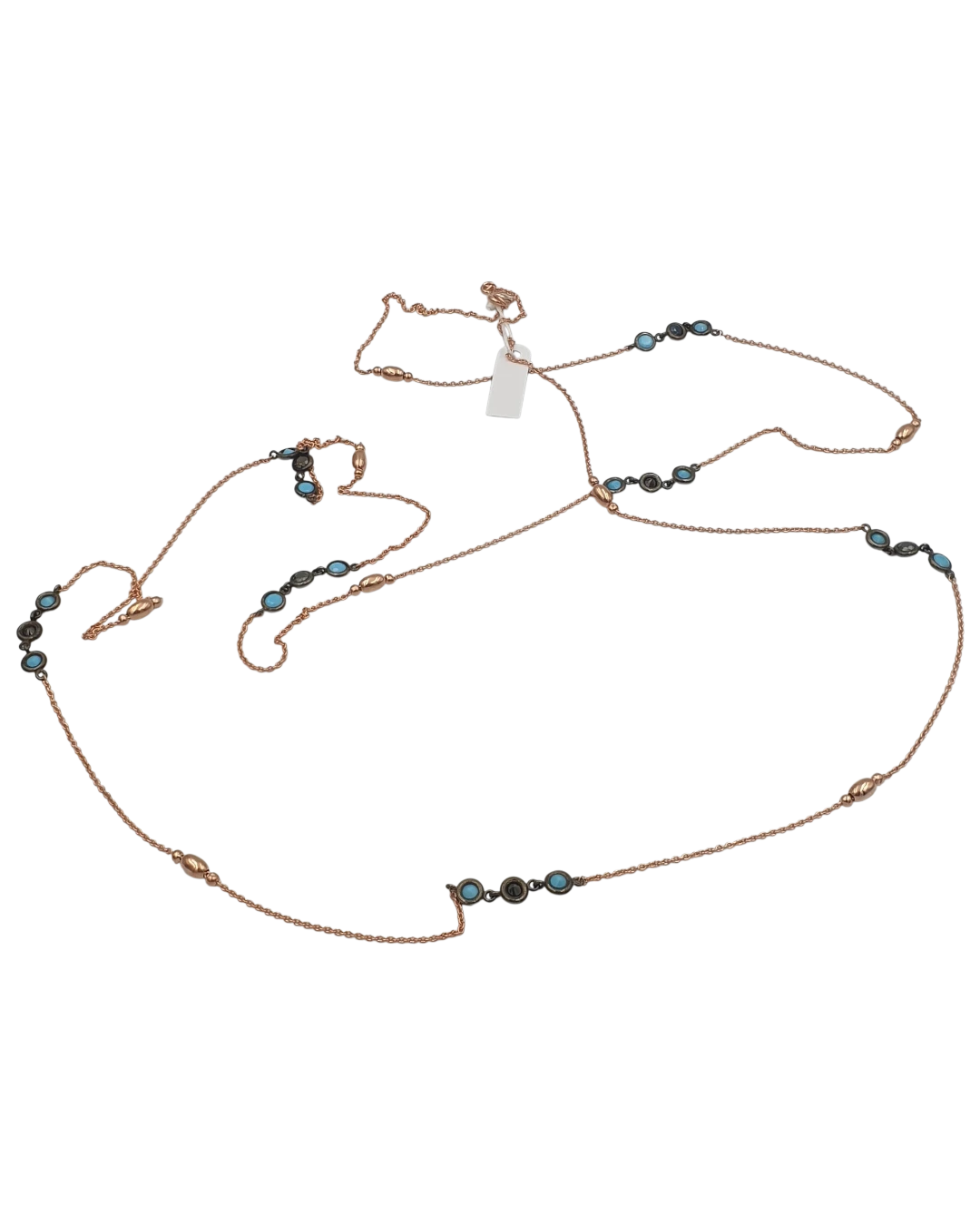 Κολιέ ασημένιο-επιχρυσωμένο με τυρκουάζ και όνυχα! Πολύ όμορφο λεπτό και κομψό σε ρόζ χρυσό! Μακρύ μπορει να φορεθει και διπλό! Μήκος 50cm. κλειστό.
