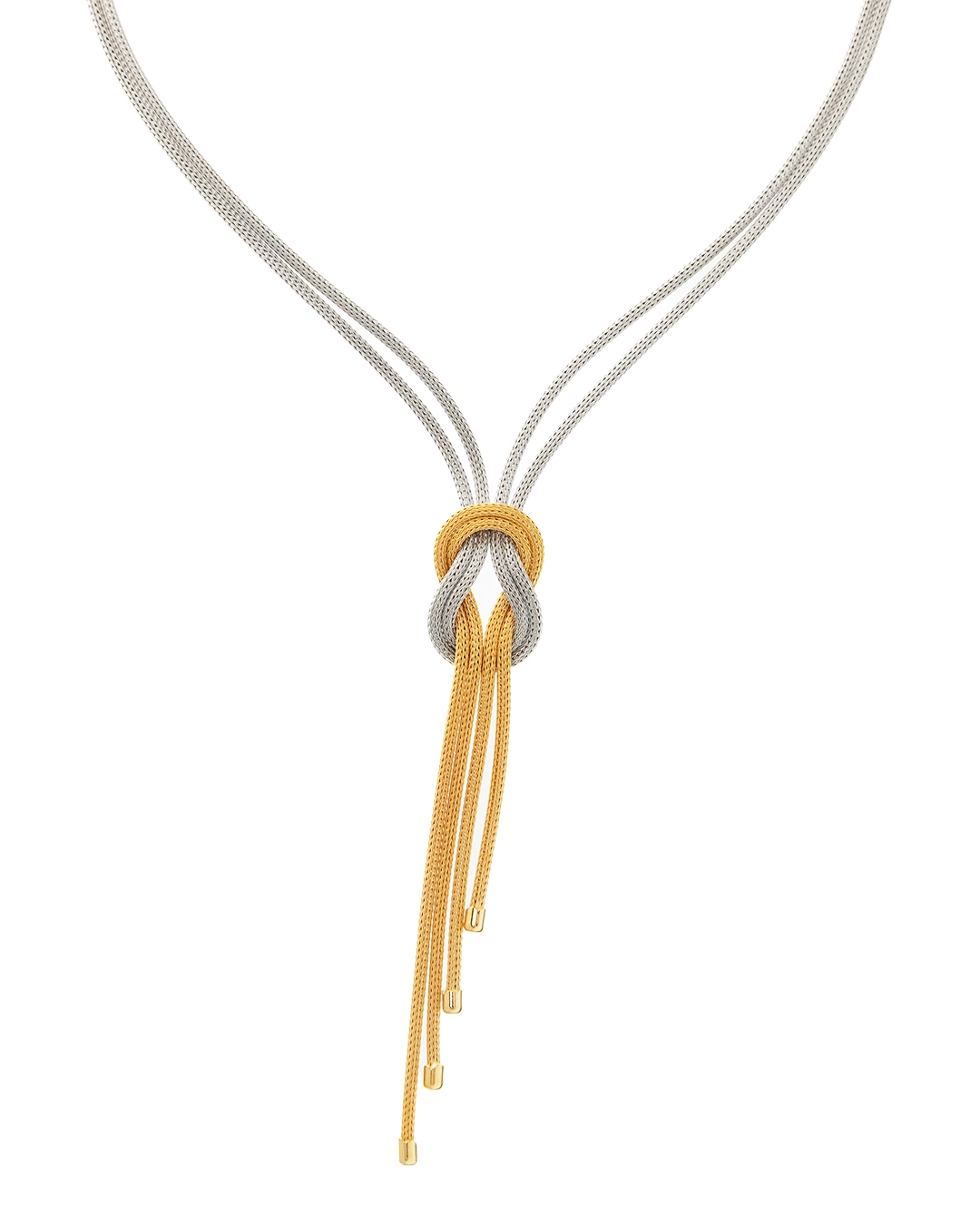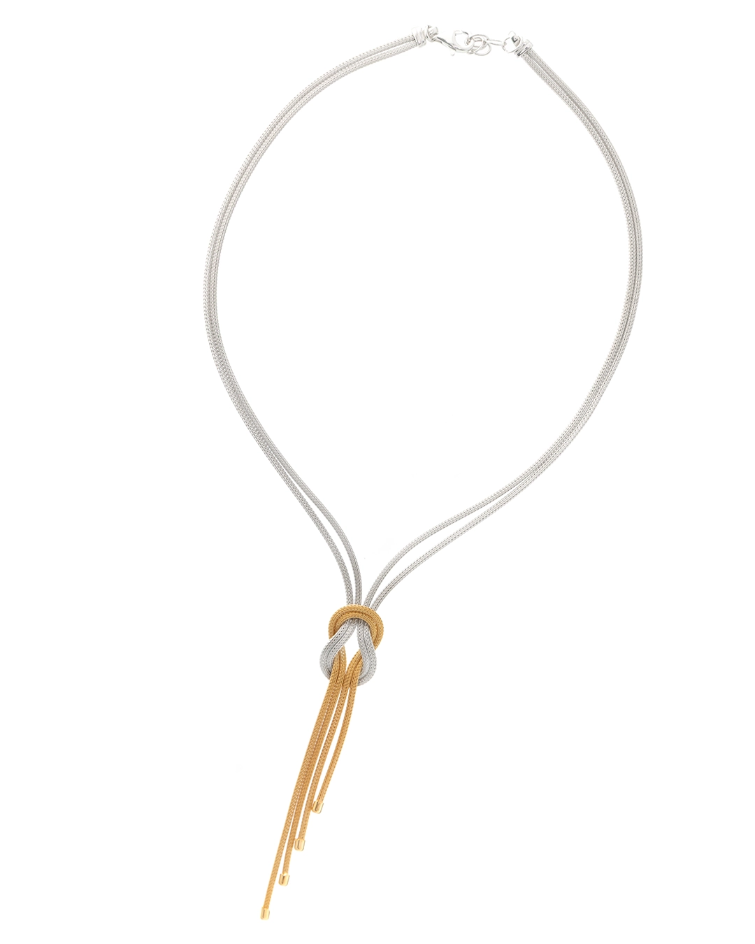 Πανέμορφο και διαχρονικό “κόμπος” ανάμικτο ασήμι-χρυσό. Μήκος 43cm. ανοικτό.