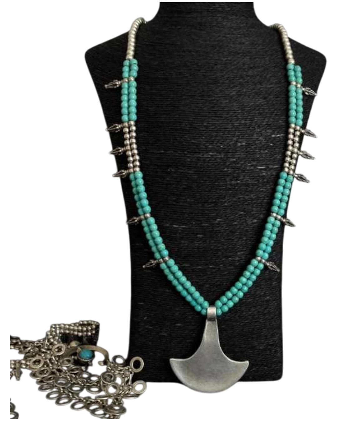 Κολιέ χειροποίητο επάργυρο με τυρκουάζ ethnic-boho