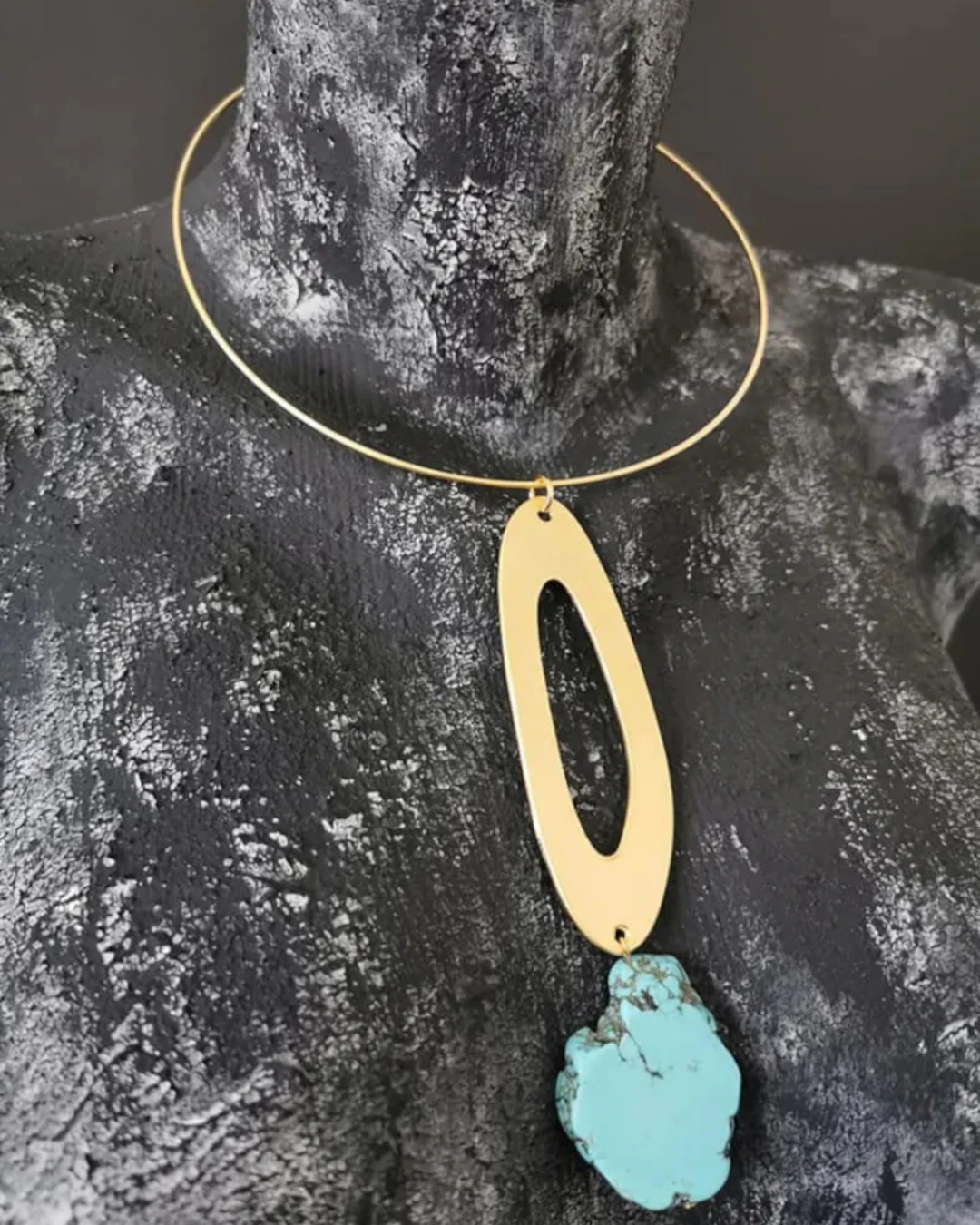 Κολιέ choker χειροποίητο επιχρυσωμένο 14Κ με τυρκουάζ boho! Πολύ όμορφο και εντυπωσιακό! Μήκος 29cm. (κλειστό)