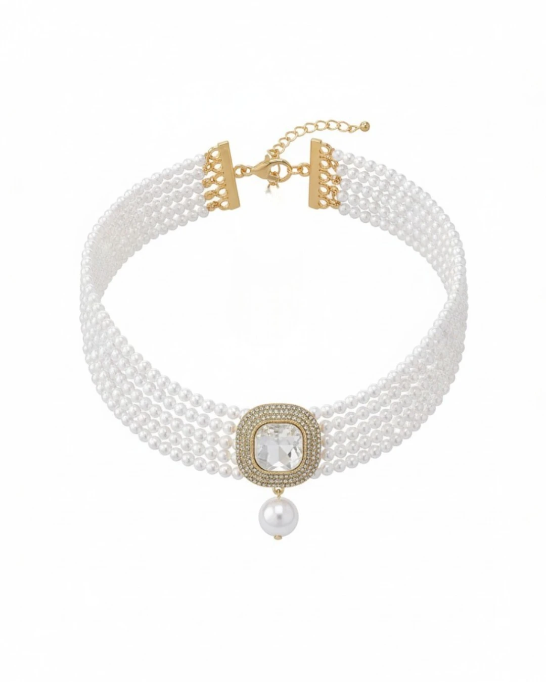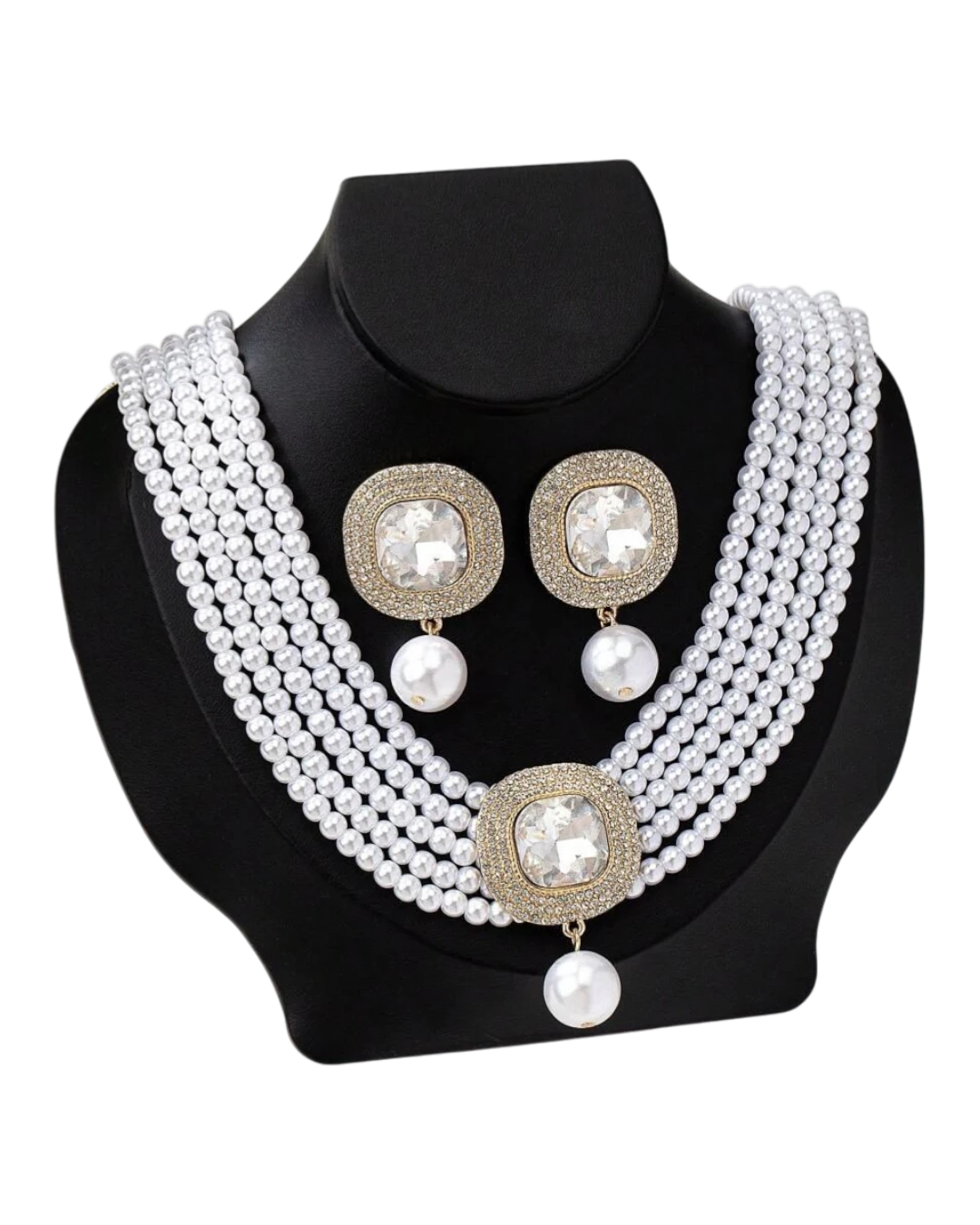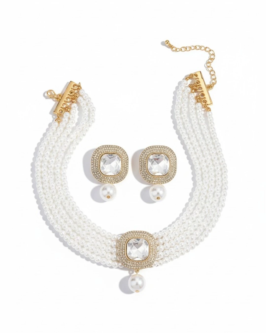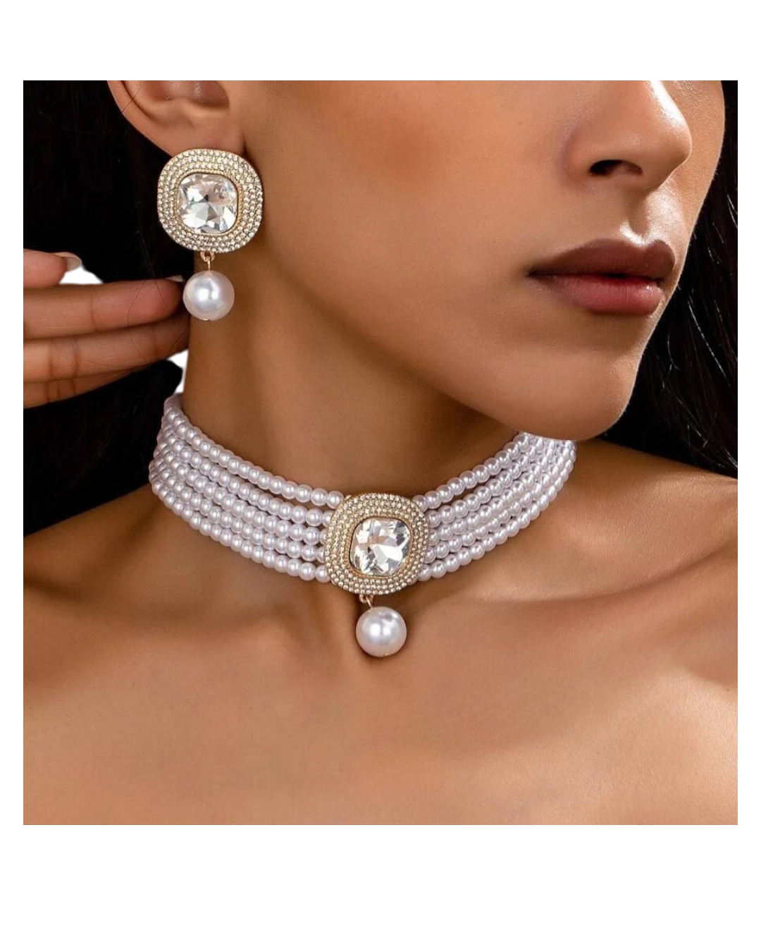 Κολιέ choker σετ με τα σκουλαρίκια του με πέρλες και κρύσταλλα