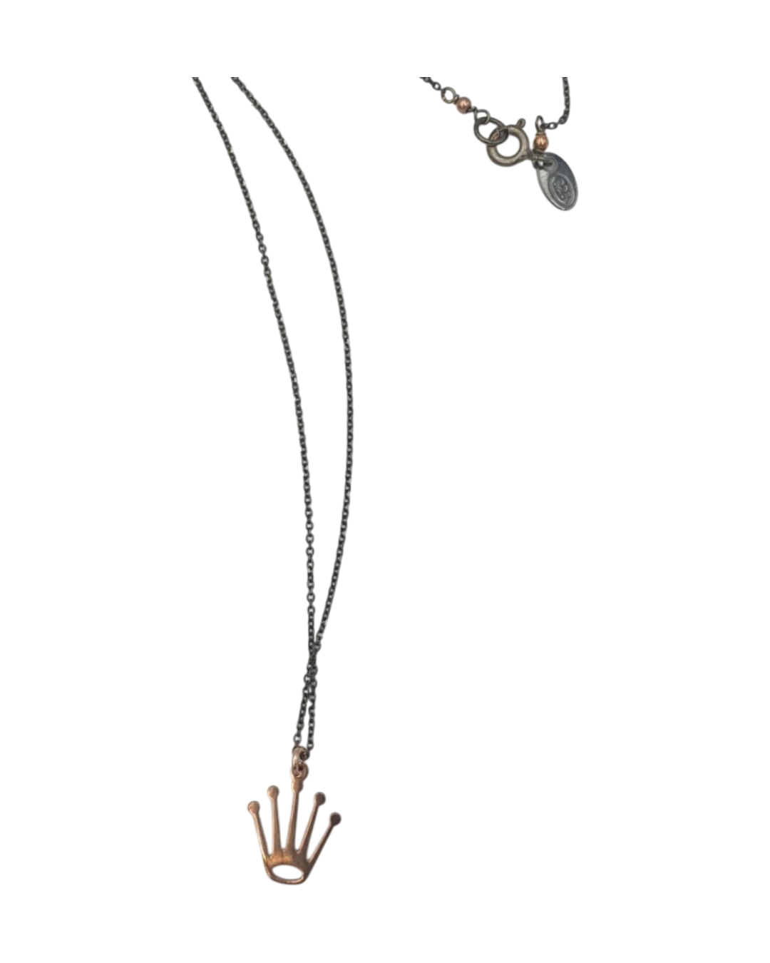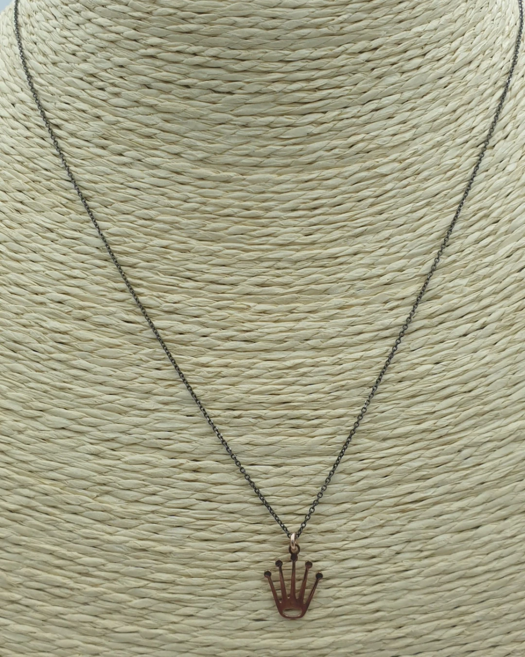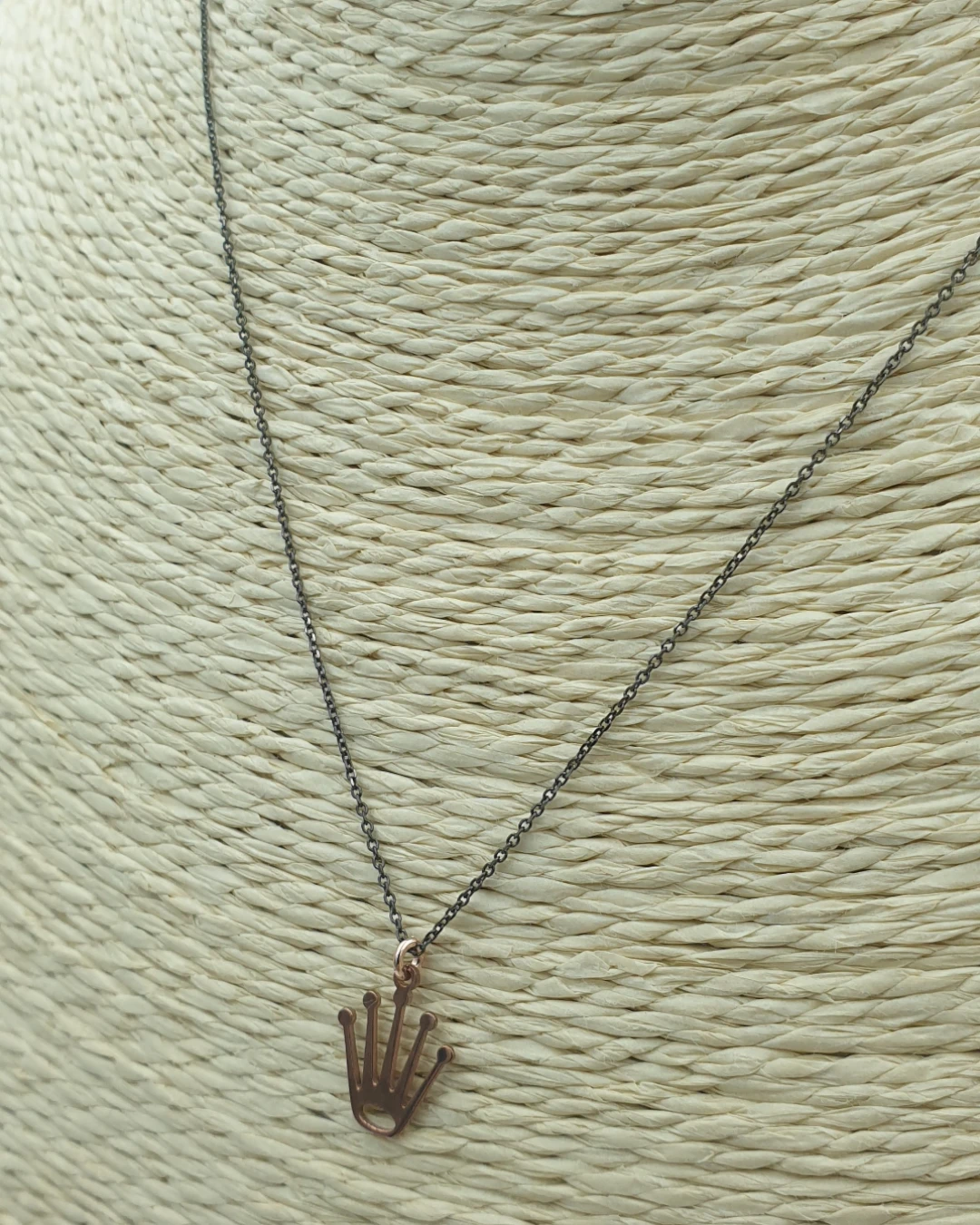 Μενταγιόν ασημένιο-επιχρυσωμένο “κορώνα”! Λεπτό και διακριτικό! Η αλυσίδα του ειναι σέ μαύρο ασήμι!