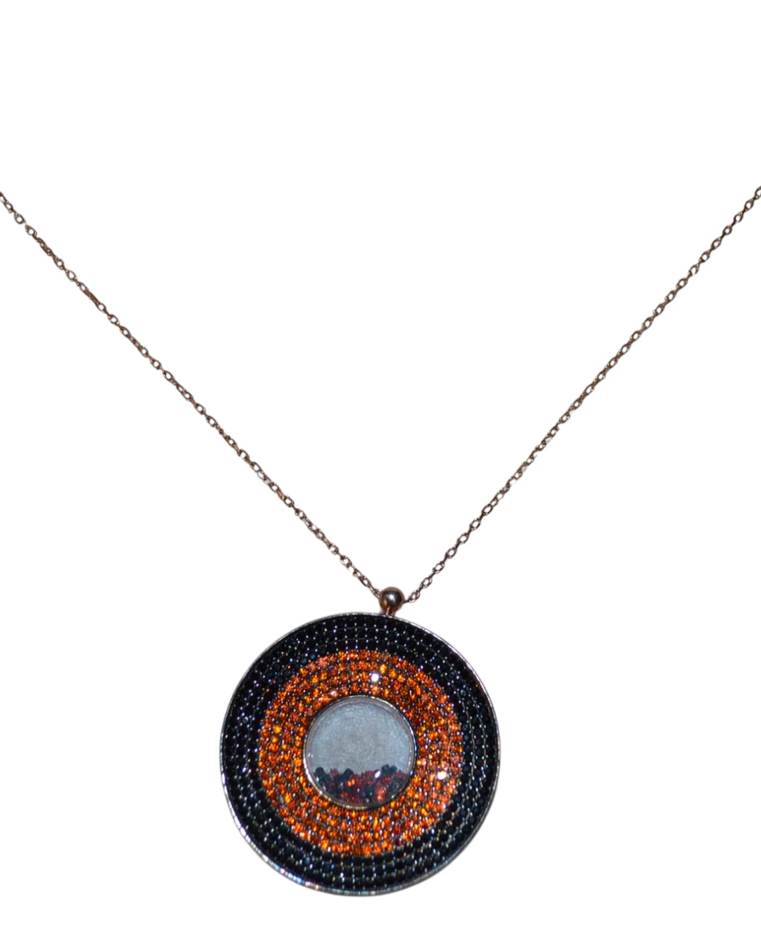 Μενταγιόν ασημένιο-επιχρυσωμένο μέ ζιρκόν! Απλά πανέμορφο και πολύ εντυπωσιακό μέ χρωματιστά ζιρκόν και στό κέντρο που κουνιούνται ελεύθερα! Διαστάσεις 3x3cm.