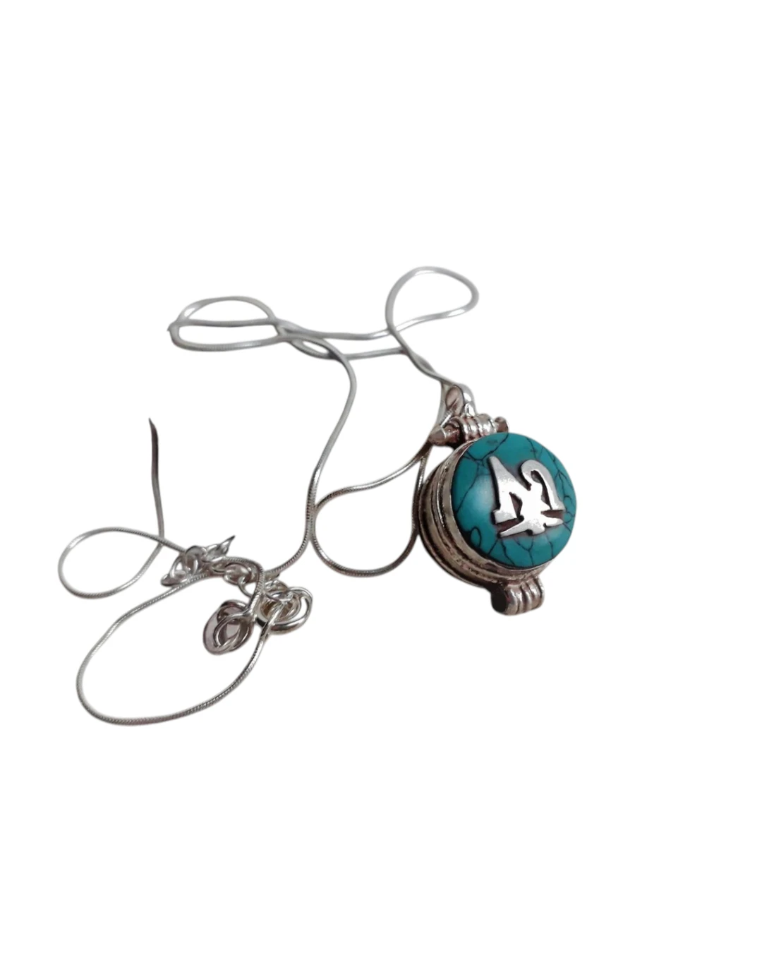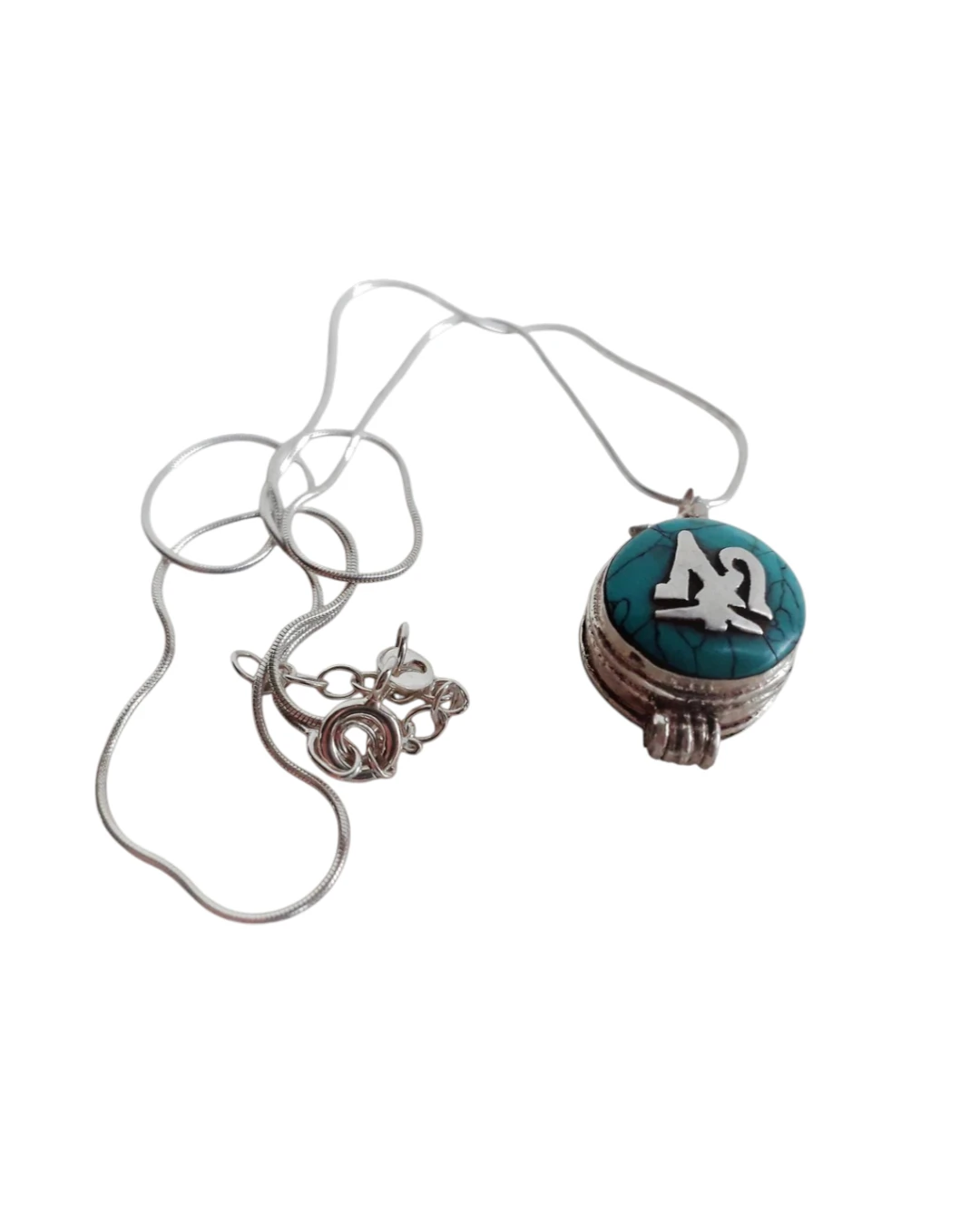 Μενταγιόν χειροποίητο ασημένιο Nepal Tibet! Πανέμορφο και εντυπωσιακό απο 925 ασήμι και τυρκουάζ – μενταγιόν μάντρa OM που ανοίγει. Μενταγιόν ευεξίας και καλής υγείας! Διαστάσεις 2.20x 1.5cm. Ερχεται με την αλυσίδα του!