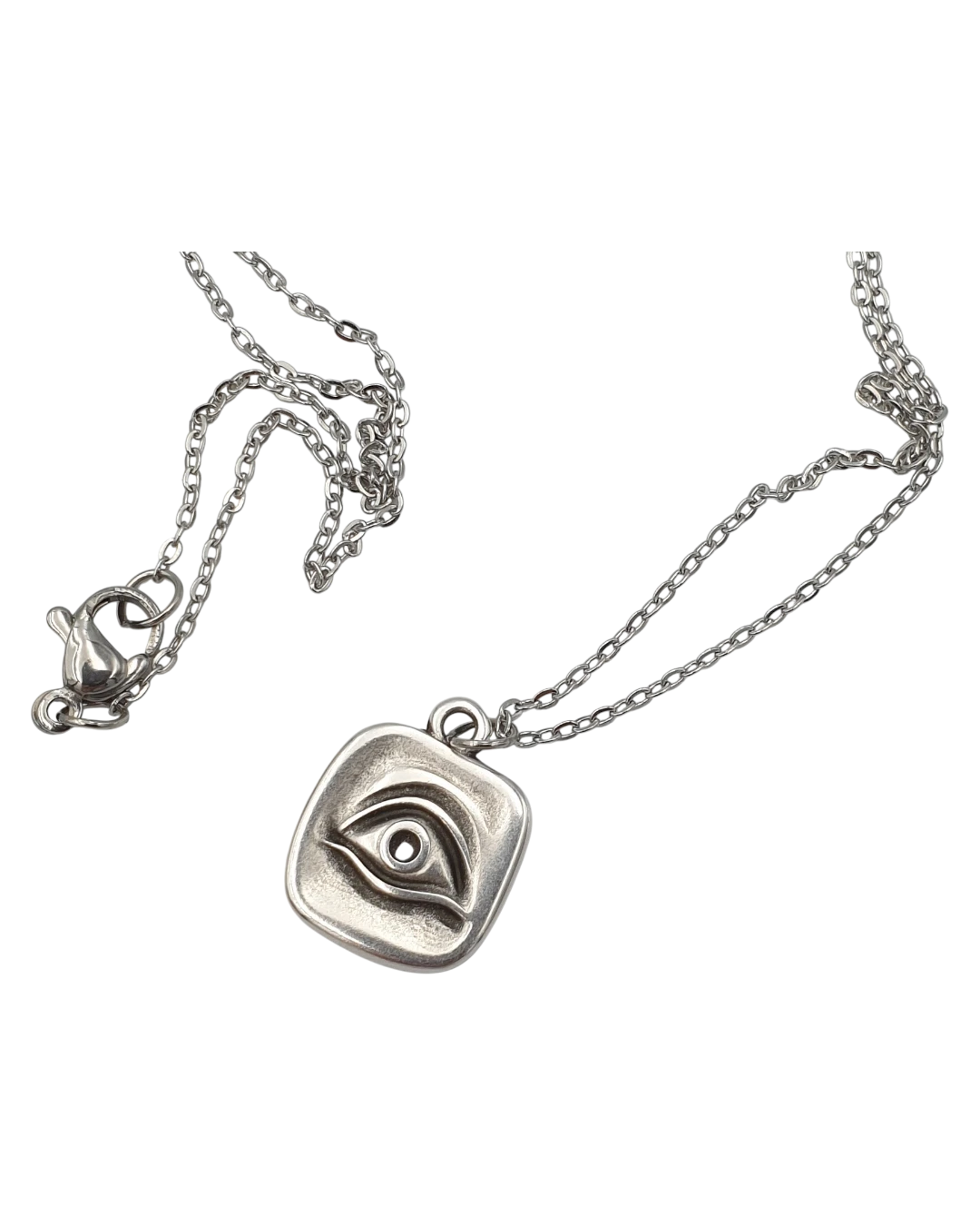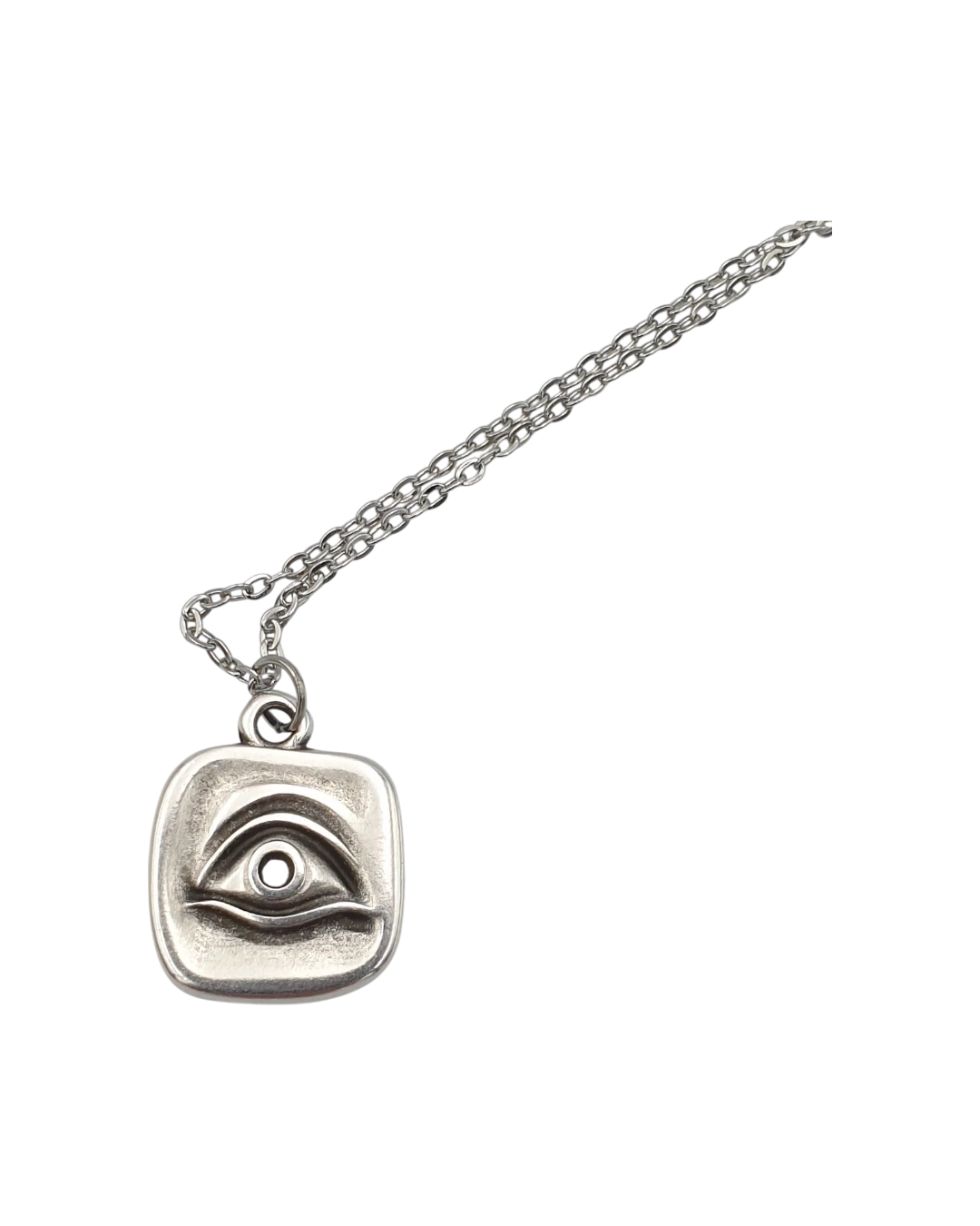 Μενταγιόν χειροποίητο επάργυρο “μάτι”! Ερχεται με την αλυσίδα του η οποία είναι ατσάλινη. Το μενταγιόν ειναι ορείχαλκος επάργυρωμένος.