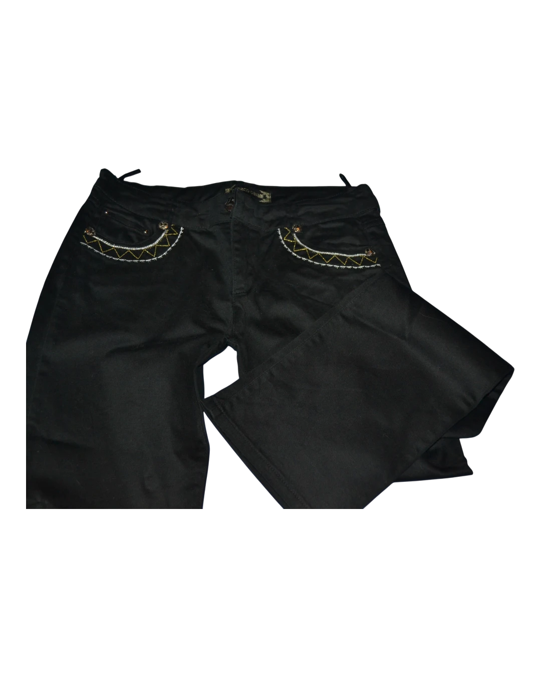 Παντελόνι ROBERTO CAVALLI μαύρο μέ κέντημα! Ομορφο και πρακτικό φοριέται απο το πρωί μέχρι το βράδυ – αυθεντικό Roberto Cavalli No. 44 Ιταλικό. Οι πίσω τσέπες με μεγαλύτερο κέντημα οπως φαίνεται και στην φωτογραφία. Μήκος 105cm.