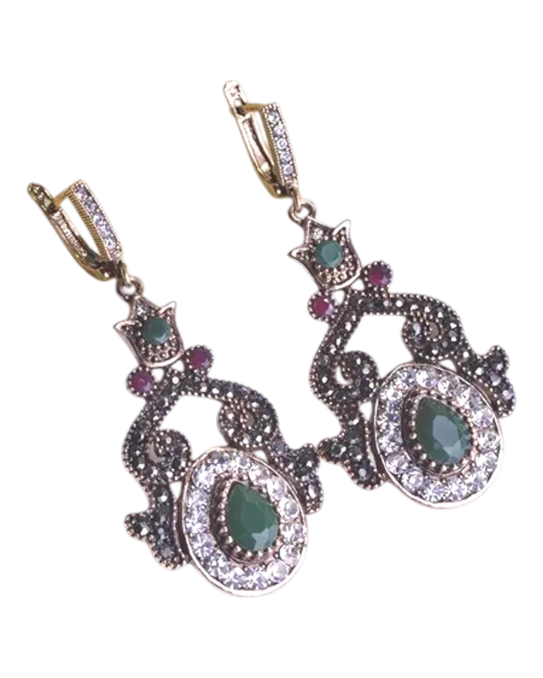 Σκουλαρίκια μπρονζέ Τούρκικου στύλ με κρύσταλλα! Υπάρχουν μόνο σε πράσινο χρώμα. Μήκος 6cm.
