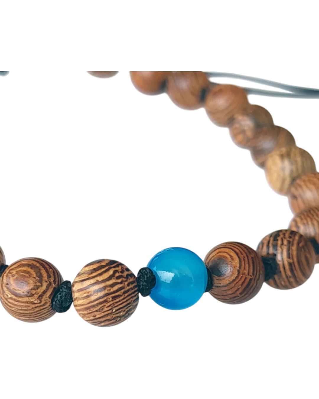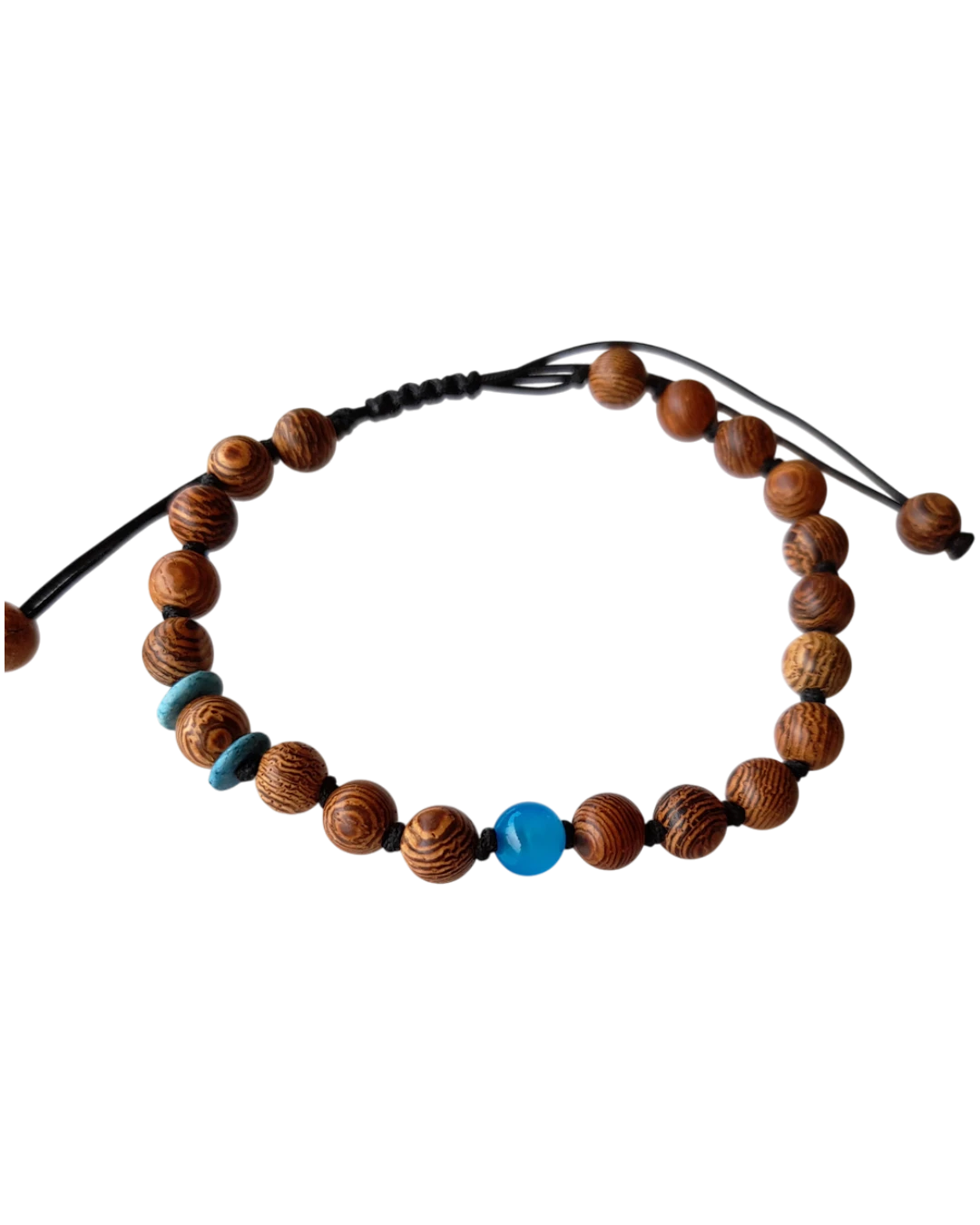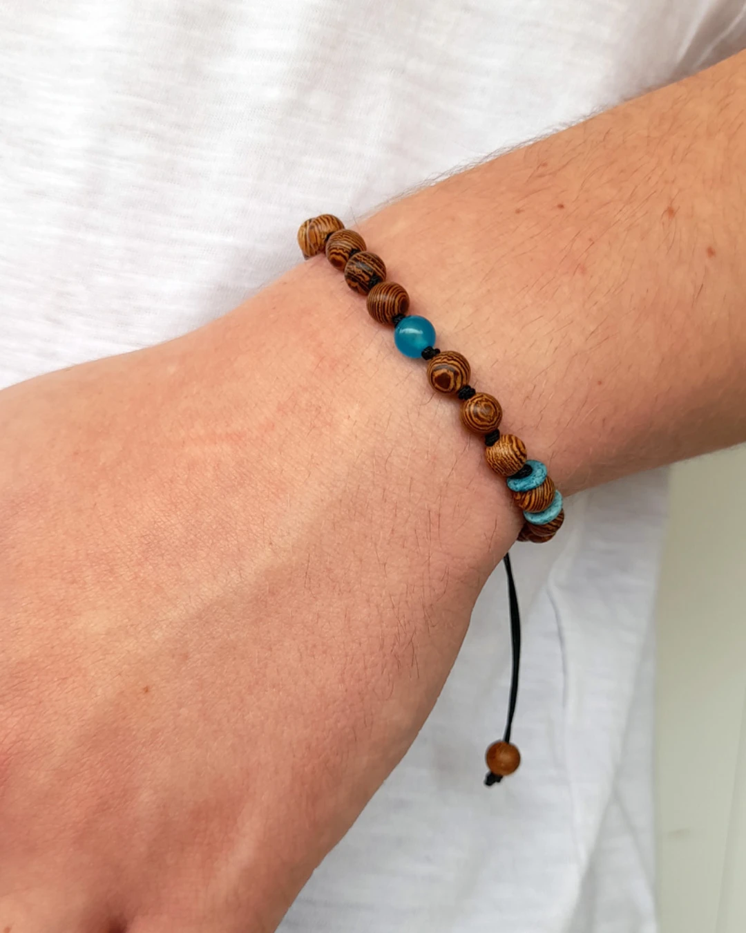 Βραχιόλι χειροποίητο Ανδρικό-unisex! Με ξύλινες χάνδρες, μπλέ/τυρκουάζ πέτρα νεφρίτη και τυρκουάζ ροδέλες. Δέσιμο αυξομειούμενο μακραμέ.