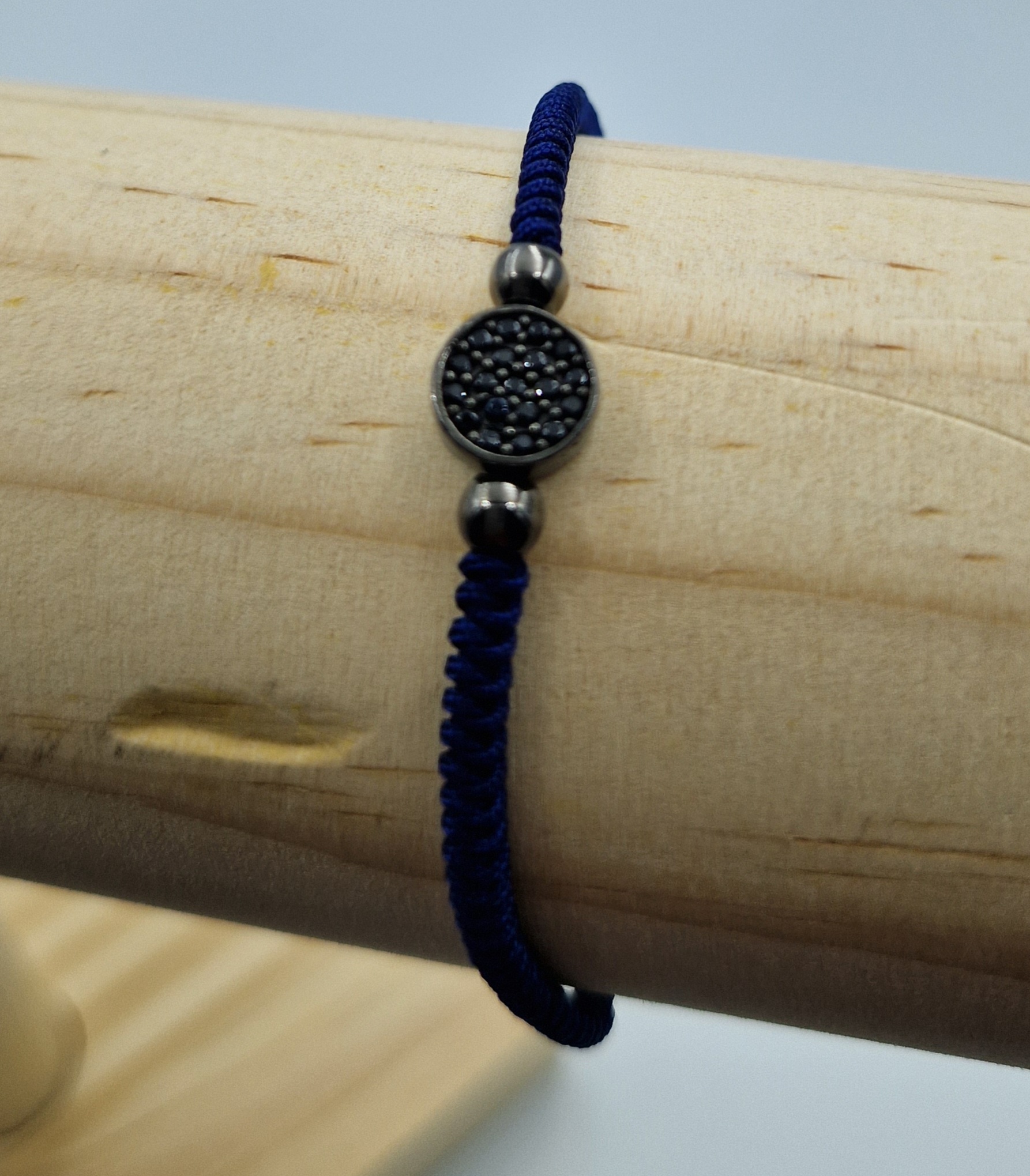 Βραχιόλι χειροποίητο μακραμέ με ασημένιο στοιχείο! Ομορφο με μαύρο ασήμι και μαύρα ζιρκόν. Αυξομειούμενο μέγεθος!