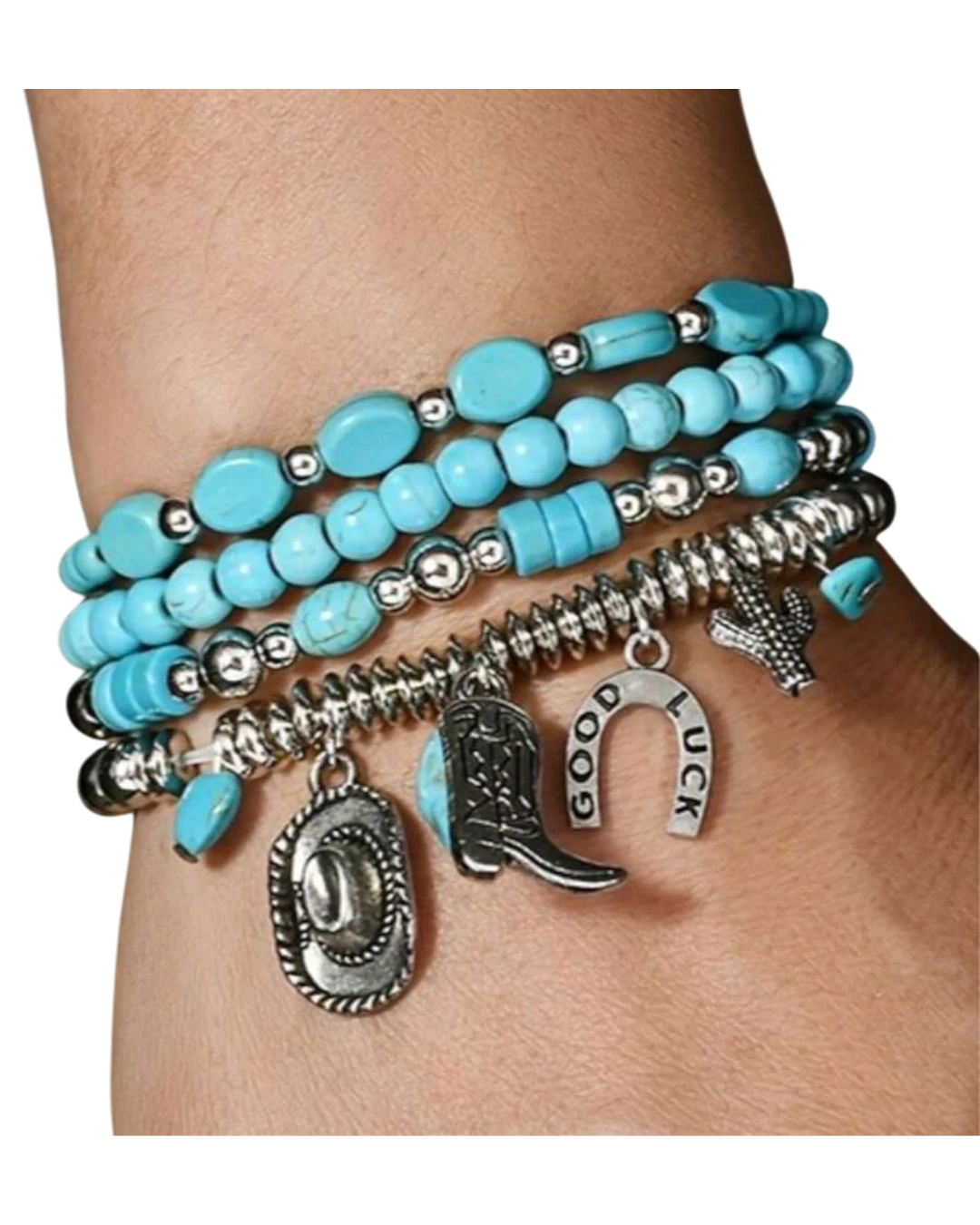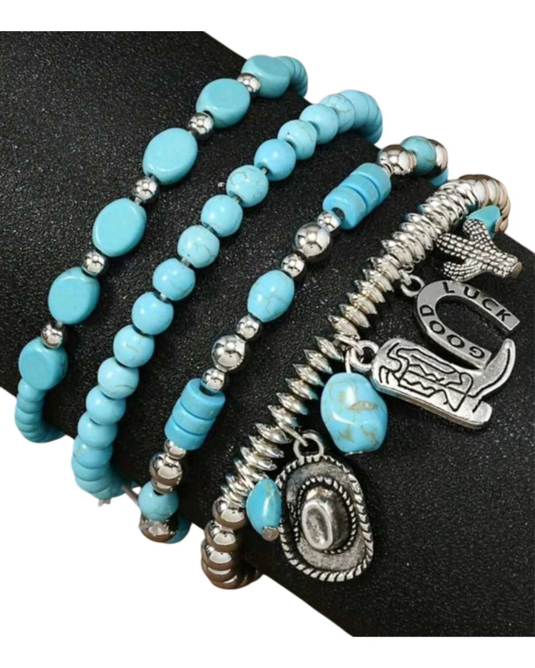Βραχιόλι σέτ των 4 ethnic boho! Πολύ εντυπωσιακό με τυρκουάζ πέτρες. Στρετς