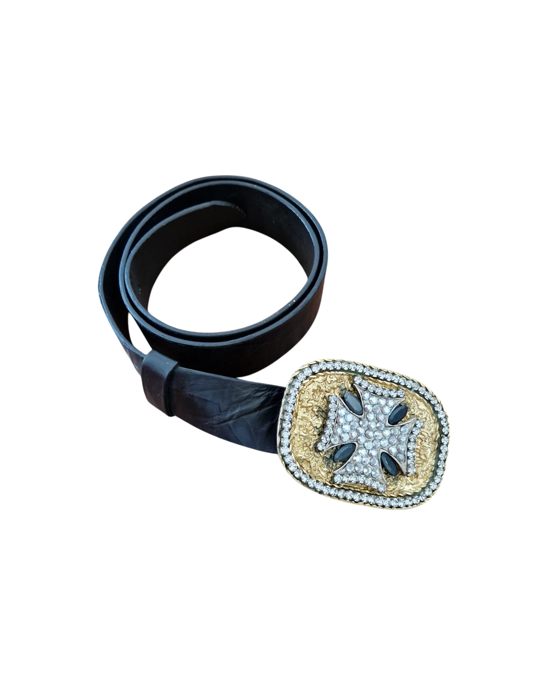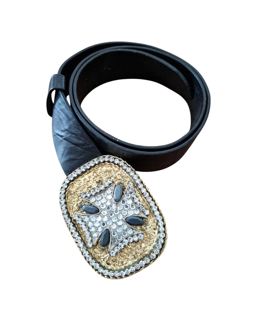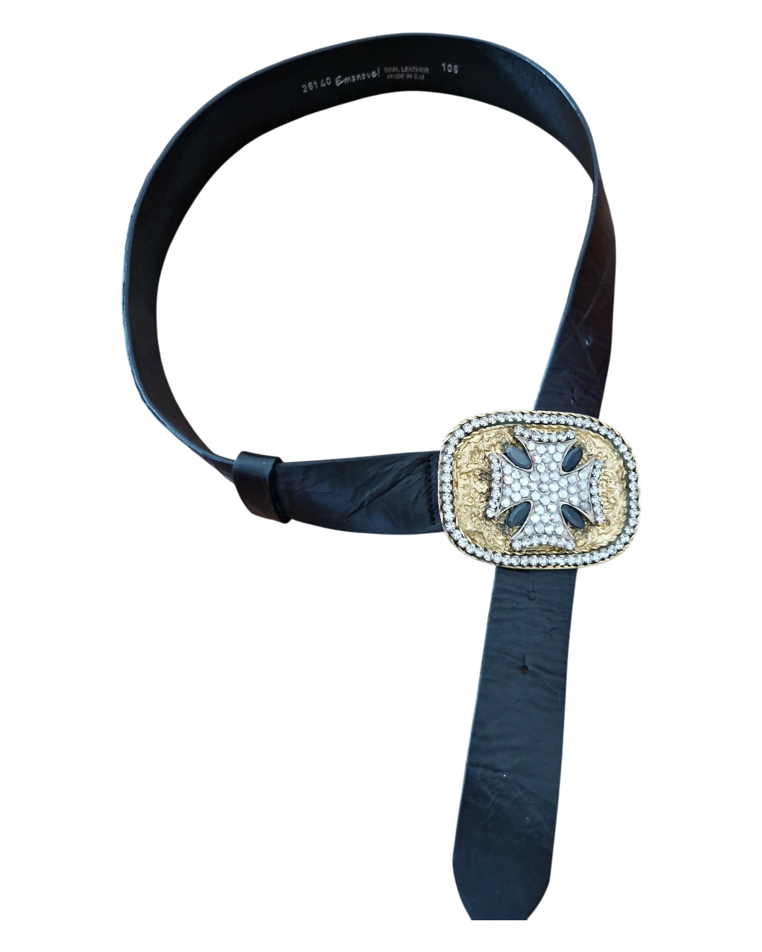 Ζώνη δερμάτινη Emanuel! Με ωραίο μαλακό δέρμα και πολύ εντυπωσιακή αγκράφα με κρύσταλλα για μέση έως 104cm.